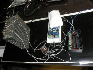 を使用しました、なくせば小枝や爪楊枝でもよく、またジャックに人体センサや別途